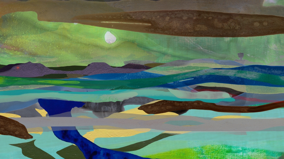 Jacco Olivier maakt video’s op basis van zijn schilderijen. Hij filmt door de verflagen heen. De beelden komen in beweging en bieden nergens meer houvast.